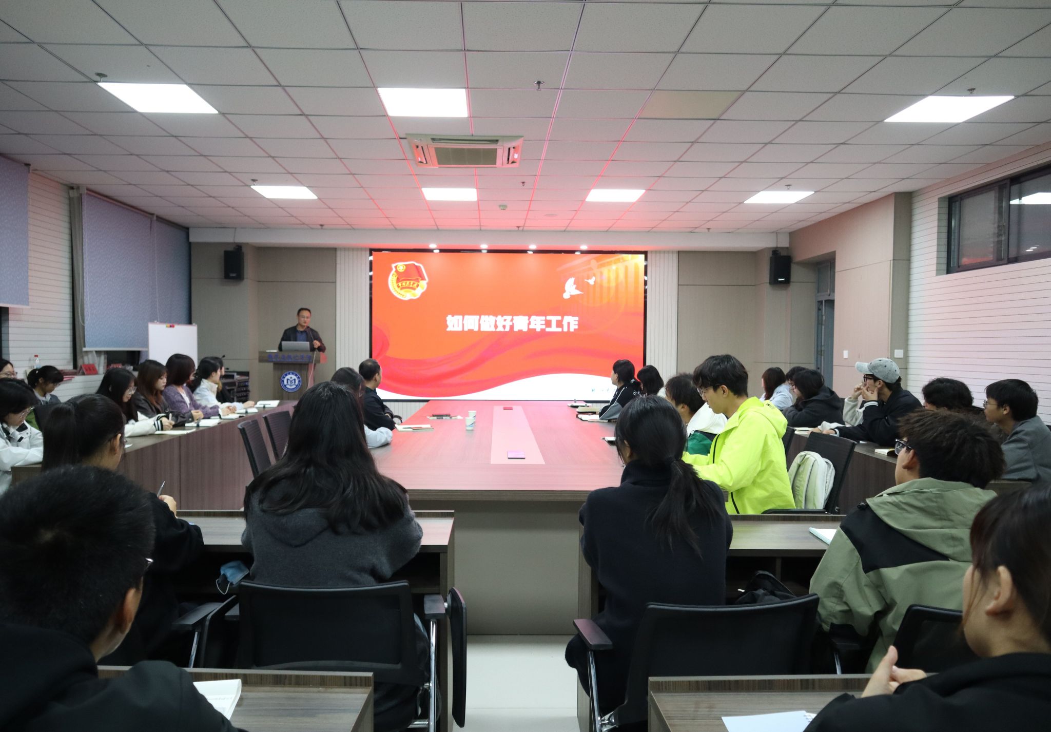 仪式结束后,校团委副书记吴鹏以《如何做好青年工作》为题做了开班第一讲。