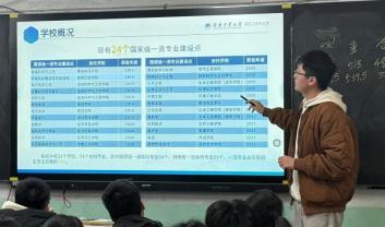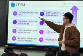 作为省 属重点高校的办学优势。重点展示了国产av在粮食工程、机械工程等特色领域的 领先地位,以及“厚基础、重实践、强能力 ”的人才培养模式,帮助学生明确 专业发展方向。不仅介绍了学校的学科优势,还讲了应用统计学相关发展前景 以及广泛应用价值。