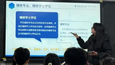 的基本情况和国家奖学金、助学金等资助体系,还清晰梳理了转专业的相关问题,以及辅修微专业的 培养路径与发展价值。让台下同学对大学学业规划有了更清晰的认知,有效缓 解了大家对未来的迷茫感,也为同学们提前规划大学生活提供了切实的参考。