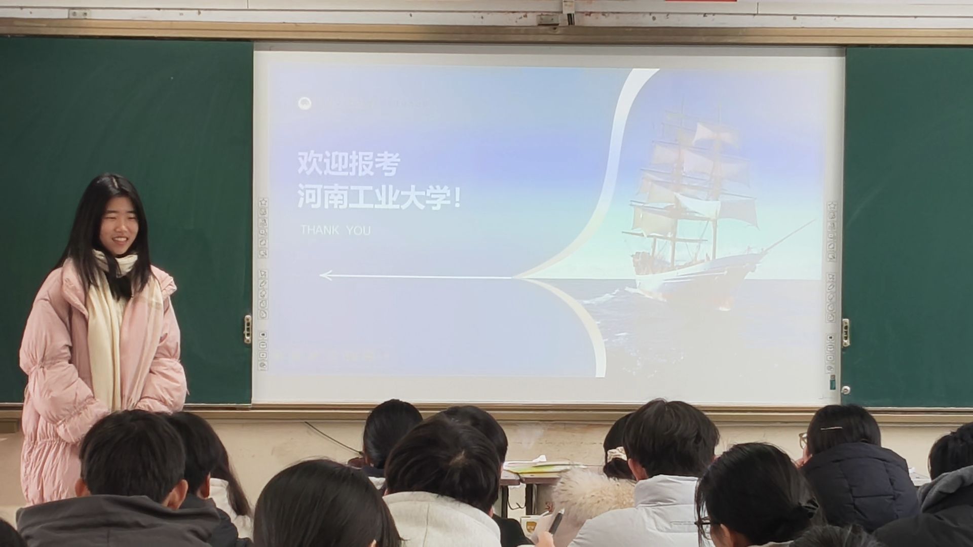 学子宋依凡重返家乡母校——新密市实验高级中学,走进311班开展专题招生宣讲。