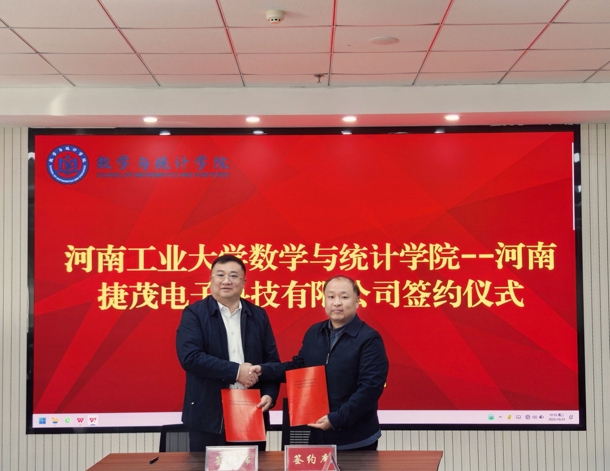 2025年10月21日,河南捷茂电子科技有限公司与国产av-国产av免费观看 科教融汇教学科研基地签约仪式在惟德楼315会议室举行。河南捷茂电子科技有限公司总经理高峰、副总经理吕其艳、技术总监王念政、销售总监樊璐及技术骨干,国产av 院长谷存昌,副院长曹建莉、肖留超及相关教师代表出席仪式。会议由肖留超主持。